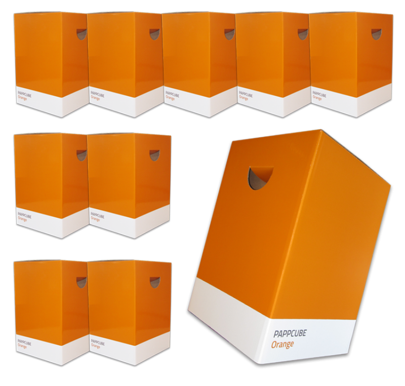 Papphocker werden immer flach angeliefert und sind selbst aufzubauen. Die Aufbauanleitung liegt der Sendung bei und steht bei Bedarf auch als Download zur Verfügung.